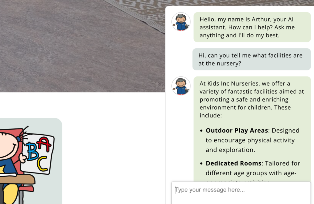 Choosing a nursery can feel overwhelming, especially when you’re trying to make the right decision for your child. Parents often just want clear, honest answers — without having to wait for a reply or search through pages of information. The chatbot helps with the everyday questions around availability, fees, locations and next steps, offering quick guidance when it’s needed most.