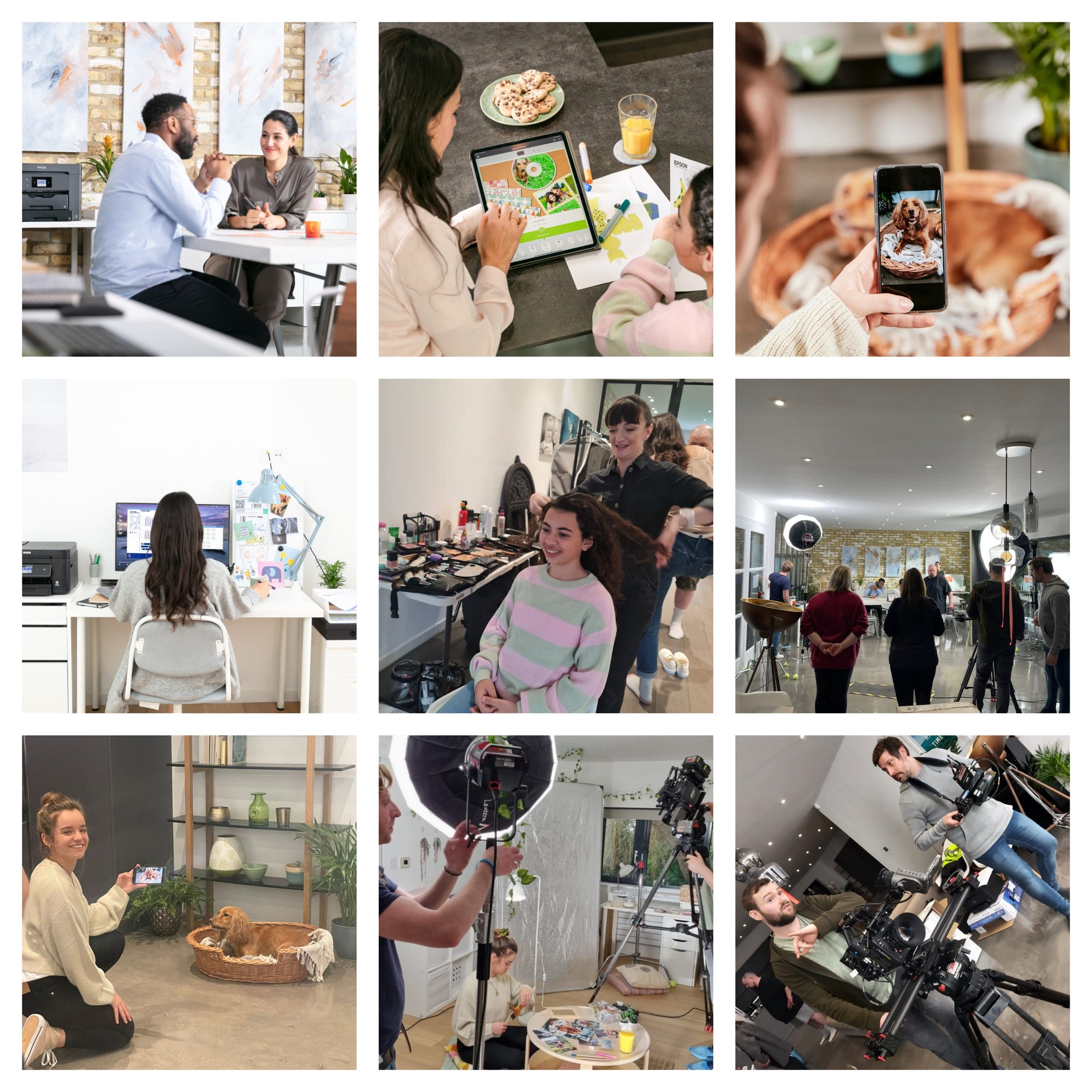 Having pitched and won the opportunity to work on Epson's latest EMEA product launch, the WF XP printer range demanded high production value and 'big thinking'. With deliverables across video and photography and with conceptual designed spaces, the shoot needed not only a state of the art location house that could be turned into a conceptual office environment for certain shots, but also a vast cast including models and animals.