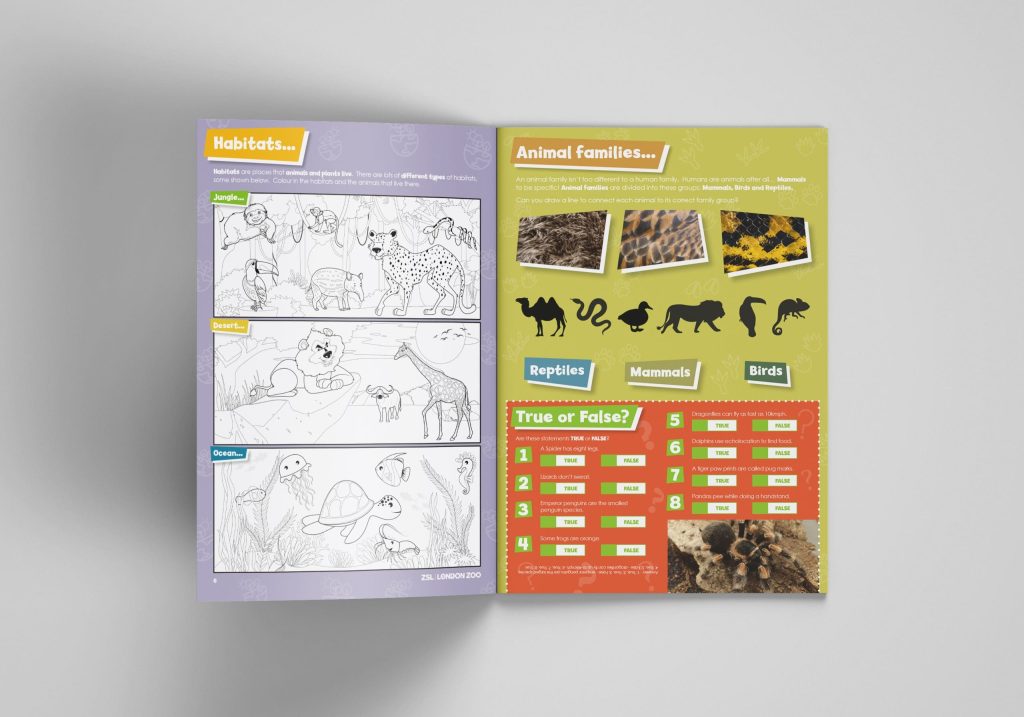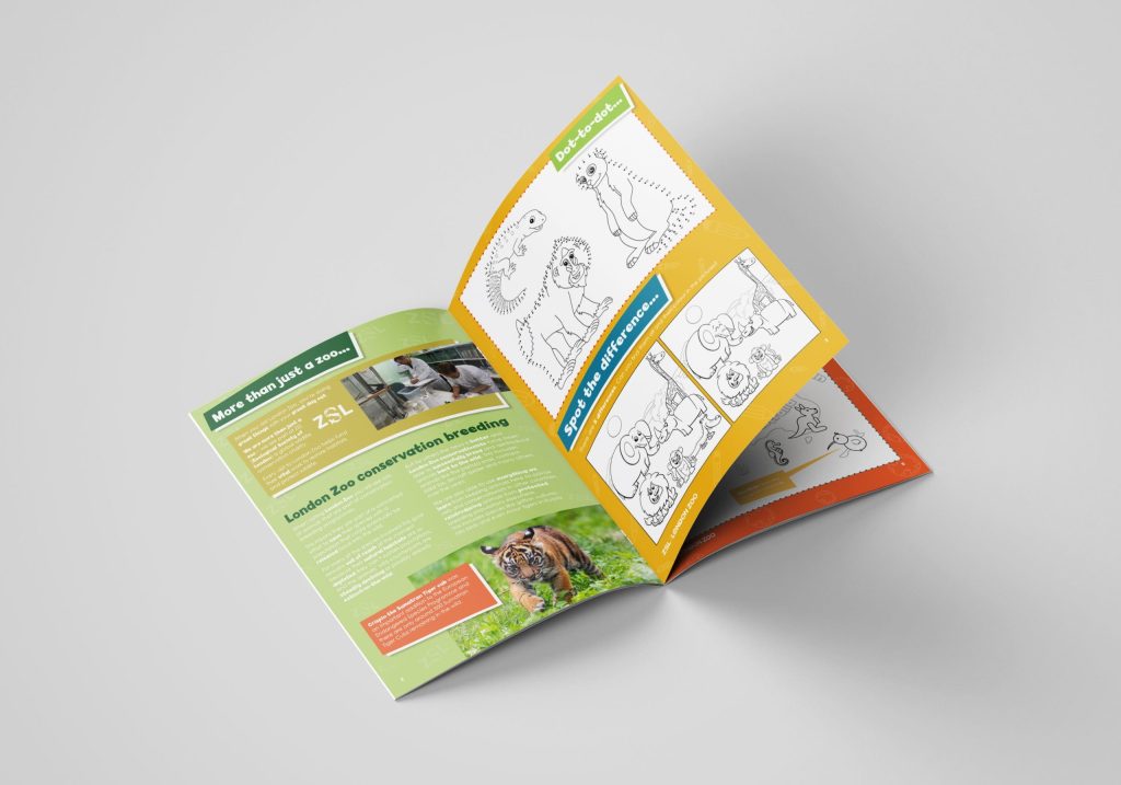 To create an eight-page, educational colouring book predominantly focused on the animals that live in the Zoo whilst encompassing a message of environmental awareness and the need to take care of the planet. Imagery needed to be created in conjunction with simple, digestible copy highlighting the key, current environmental issues the world faces.